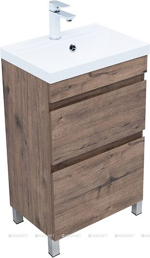 Тумба под раковину Aquanet Нота new 50 напольная 2ящ. цв.дуб веллингтон табак (344136)